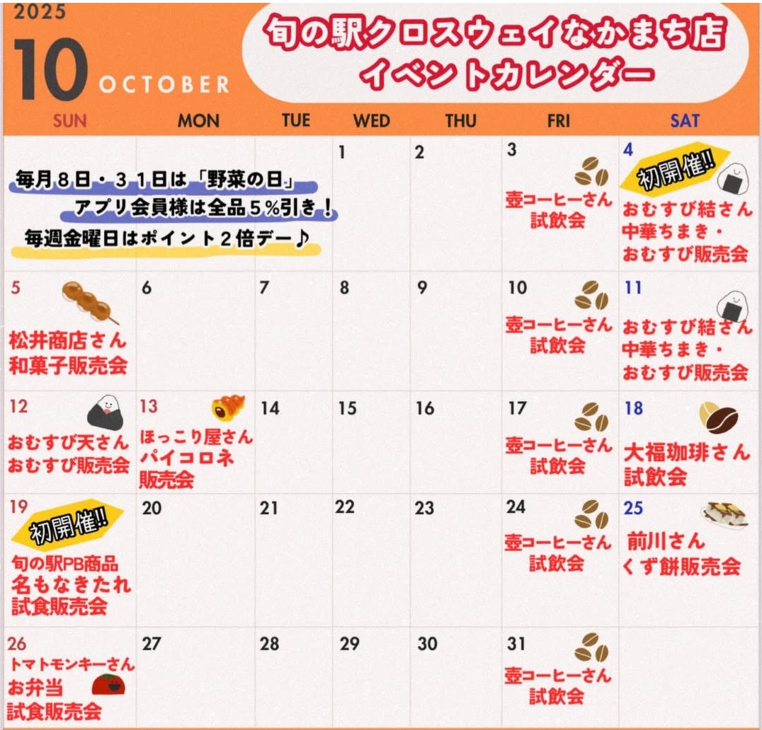 道の駅「クロスウェイなかまち」の農産物・特産品直売所「旬の駅 クロスウェイなかまち店」における旬の情報10月編をお届けします。