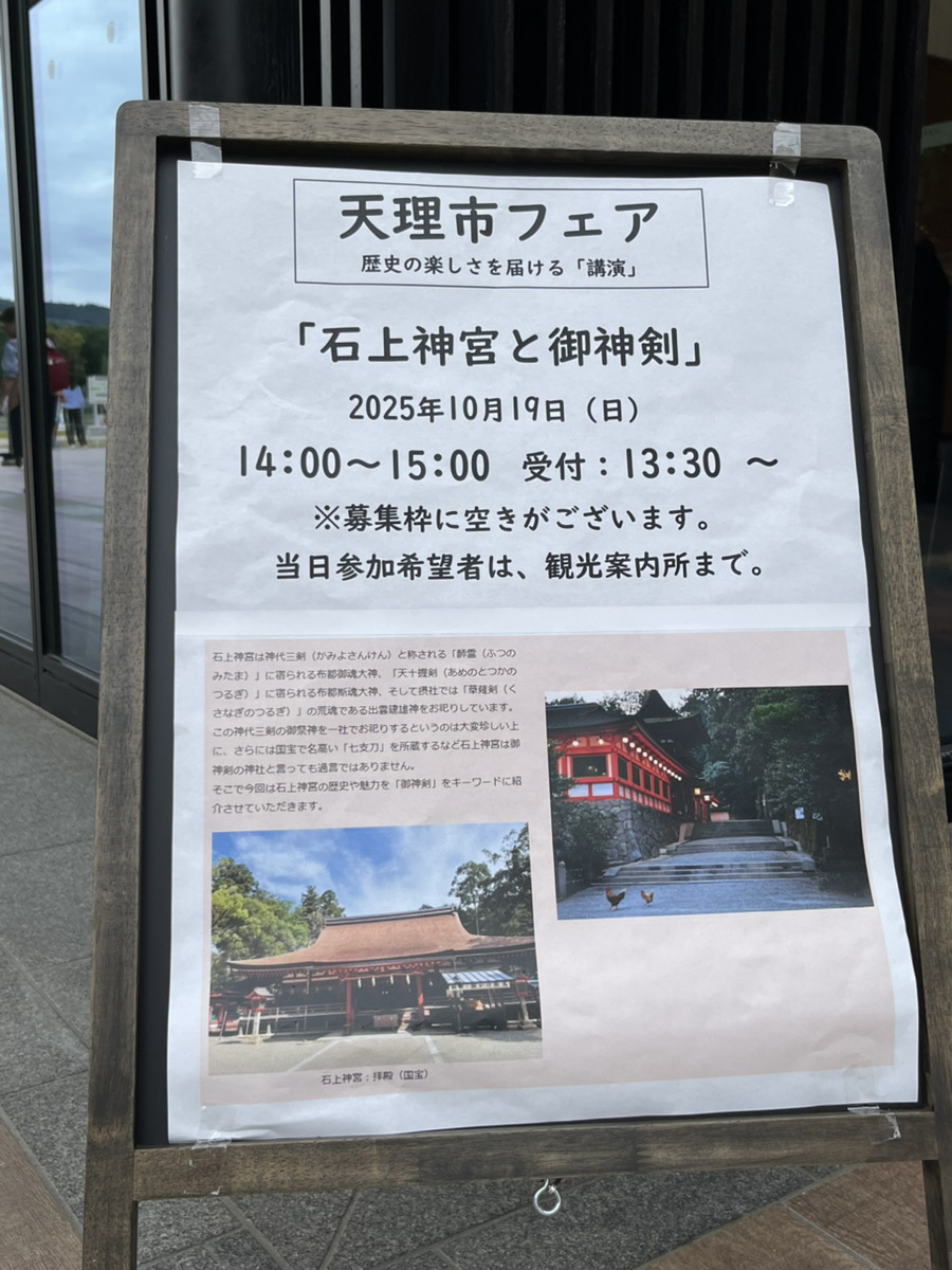 さらに10月14、16、19日の3日間、天理大学附属天理参考館や石上神宮ご協力の下、歴史の楽しさを届ける「講演」と「展示解説」も行いました。
