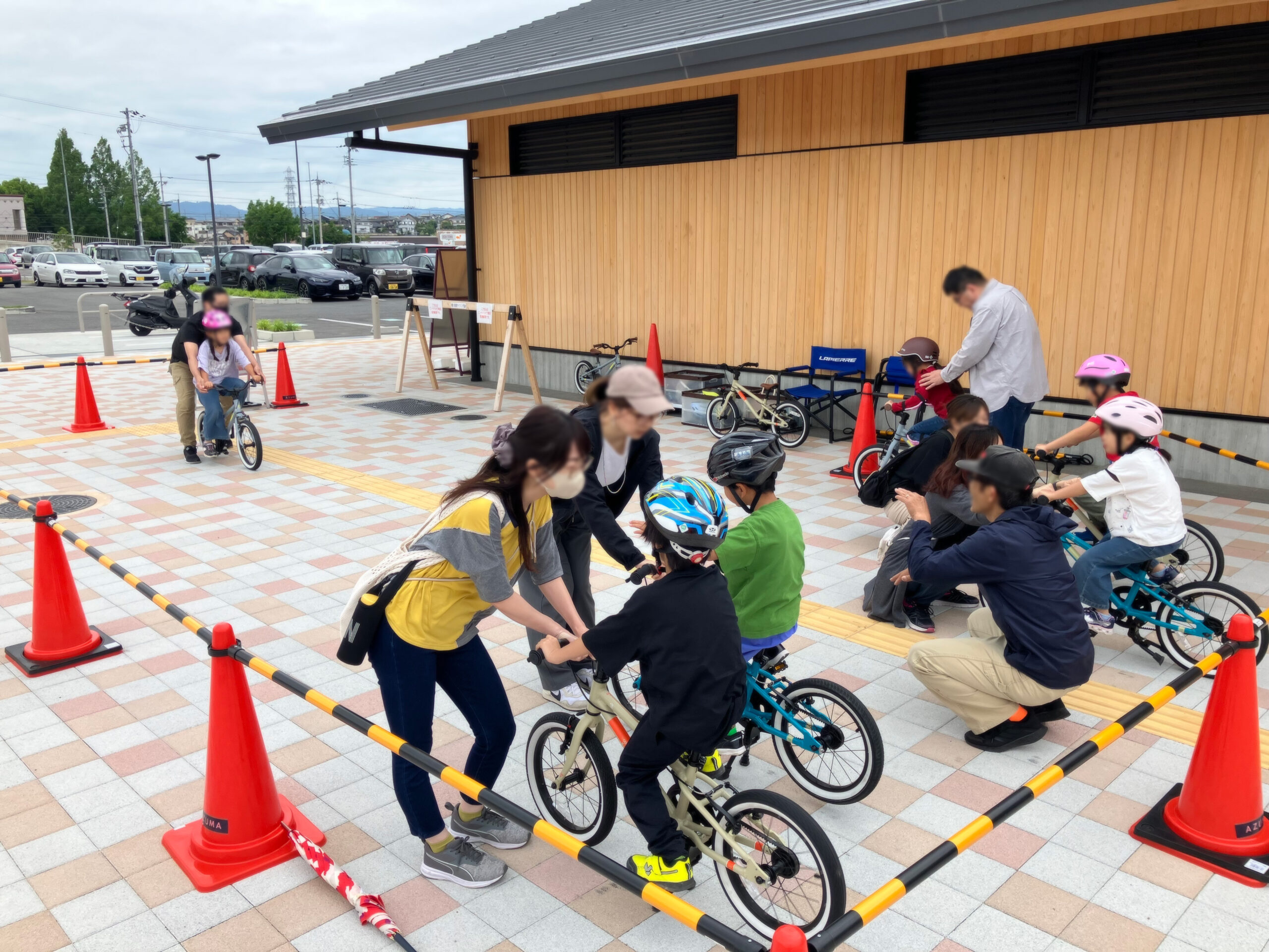 道の駅「クロスウェイなかまち」では、「はじめての親子じてんしゃ教室」を開催しました。