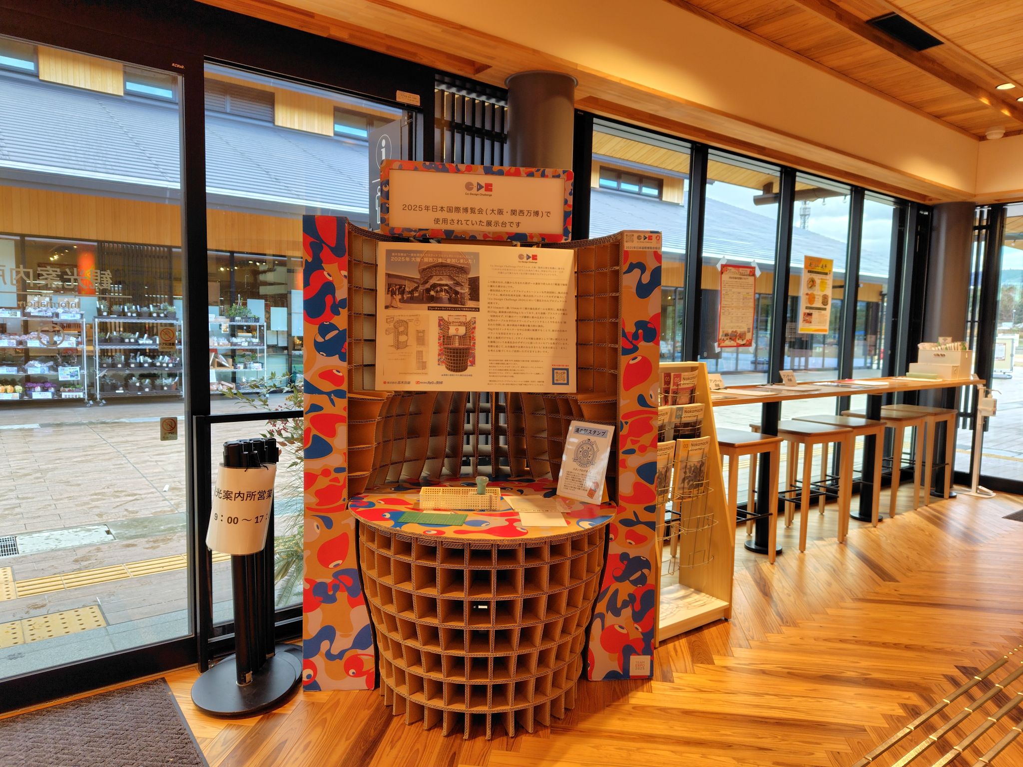 <期間限定> 万博のダンボール展示台がクロスウェイなかまちにお目見え!