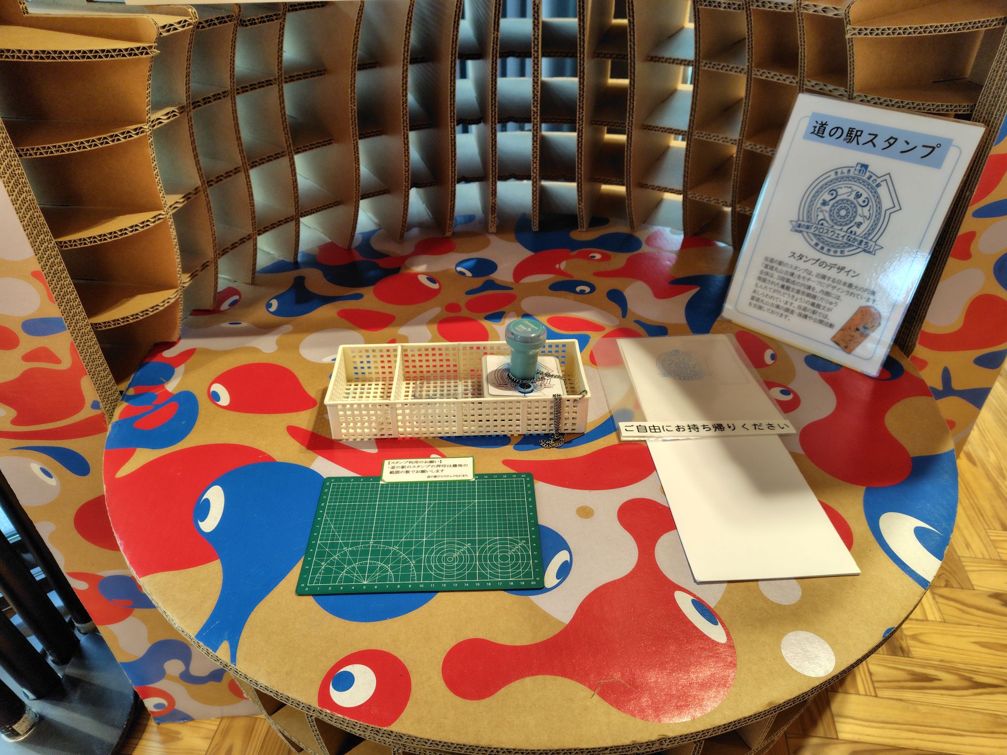 クロスウェイなかまちでは、『道の駅スタンプ』を押す台として活用中。お写真もど~ぞ♪
