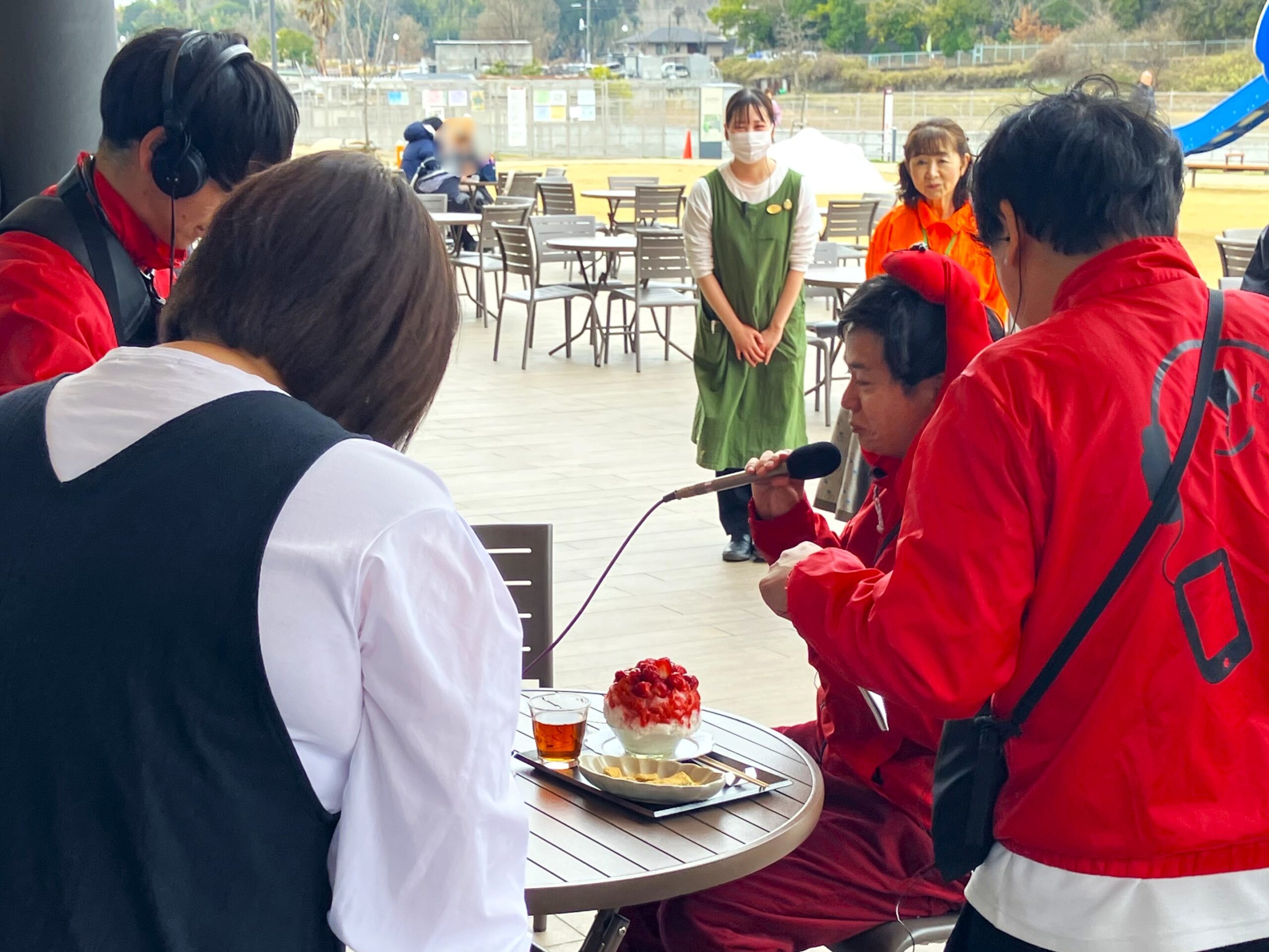 このなかの『そのまちのお昼』のコーナー(午後0:35位から)において、『てっちー』こと高山哲哉アナウンサーが、生中継「めざせ!一万人の輪」で、当駅を紹介してくださいました。レストランでは「奈良県産『大和牛』のローストビーフ重と奈良の野菜のお惣菜」を、カフェでは奈良のブランドいちご『古都華』をふんだんに使った「スペシャル古都華ミルク氷」をご堪能、声だけの『食レポ』の技が光っていました!
