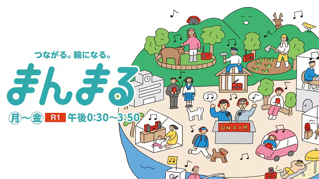 「つながる。輪になる。」番組を目指してお送りしておられるというNHKラジオ第1「まんまる」(出演:週の後半ご担当の松尾剛アナウンサー、この日のパートナーは俳優の伊藤かずえさん)。