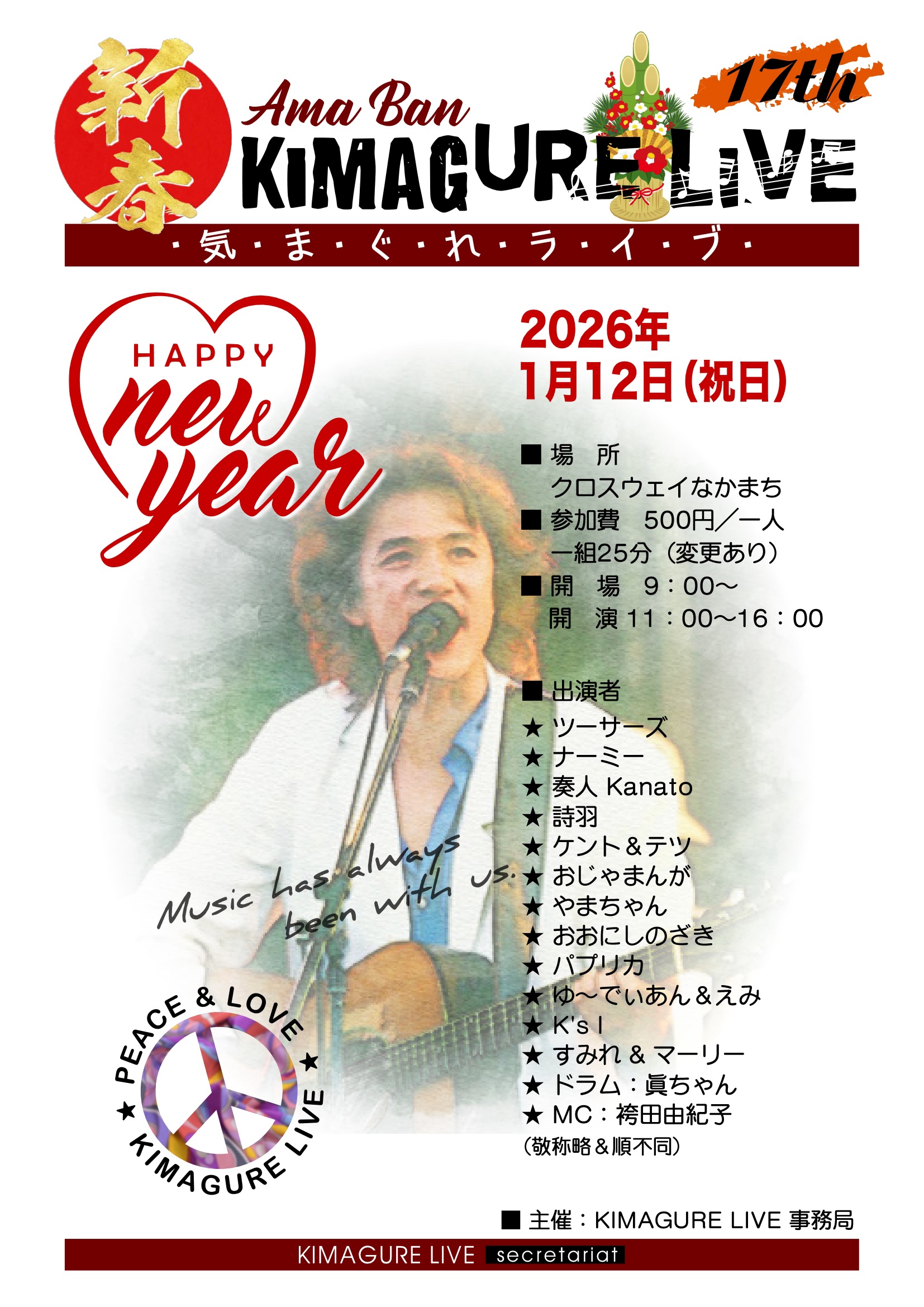 道の駅「クロスウェイなかまち」では、1/12(月・祝)に、地元のアマチュアバンドによる「気まぐれライブ」を開催します。ギターや三線など、さまざまな楽器を奏でるバンド13組が、交流スペースで演奏します。どうぞお立ち寄りのう […]